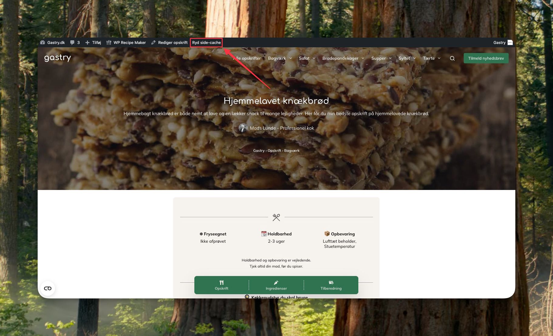 • Rydde cache for den side, du står på, direkte fra topbjælken på din blog (frontend)